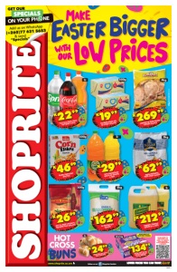 PAGE 6 Not for Sale to Persons Under the Age of 18. Drink Responsibly. Get SHOPRITE specials on WhatsApp, add (+260)77 631 5653 and say “Hi” OR Scan this QR code to add SHOPRITE as a contact. ZMFOSRDTVZ_E K11999 CASTLE LITE BEER 6x330ml NRB PER PACK K11999 FLYING FISH PRESSED LEMON FLAVOURED BEER 6x330ml NRB PER PACK K11999 BRUTAL FRUIT RUBY APPLE SPRITZER 6x275ml NRB PER PACK K19999 SAVANNA DRY/ ANGRY LEMON CIDER 6x330ml NRB PER PACK K4499 BELGRAVIA ALL VARIANTS 440ml EACH 6x330ml 440ml 6x275ml 6x330ml 6x330ml K13999 CELLAR CASK JOHANNISBERGER NATURAL SWEET RED WINE 750ml EACH K11999 FOUR COUSINS NATURAL SWEET WHITE/RED/ ROSÉ/DRY WINE 750ml EACH K8999 AUTUMN HARVEST CRACKLING WHITE/ ROSÉ WINE 750ml EACH WINES K19999 DURBANVILLE HILLS RED WINE ALL VARIANTS 750ml EACH 750ml 750ml 750ml 750ml BEERS & CIDERS K29999 GORDON’S PREMIUM PINK GIN 700ml EACH K18999 RED SQUARE VODKA ALL VARIANTS 750ml EACH K14999 ROYAL CIRCLE WHISKY 750ml EACH K49999 TULLAMORE D.E.W. IRISH WHISKEY 750ml EACH K41999 JÄGERMEISTER LIQUEUR 750ml EACH K24999 THREE SHIPS SELECT WHISKY 750ml EACH SPIRITS & MORE 750ml 750ml 750ml 750ml 700ml 750ml ANY 2 FOR J.C. LE ROUX LA CHANSON/LA FLEURETTE SPARKLING WINE 2x750ml K219 FREE DEAL KLIPDRIFT EXPORT BRANDY 750ml & GET COCA-COLA SOFT DRINK 2l FREE K199 COMBO DEAL OLD BUCK GIN 750ml + ANY McKANE MIXERS ALL VARIANTS 2x300ml K200 2x750ml 750ml 2l 750ml FREE + + + + K24999 BELL’S BLENDED SCOTCH WHISKY 750ml EACH 750ml OFFERS AVAILABLE AT ALL SHOPRITE ZAMBIA STORES FROM MONDAY 23 MARCH 2026 UNTIL SUNDAY 6 APRIL 2026. WHILE STOCKS LAST. WE RESERVE THE RIGHT TO LIMIT QUANTITIES. IF THERE IS ANY ERROR OR OMISSION IN PRICE OR AVAILABILITY OF AN ITEM, PLEASE SEE MANAGEMENT IN-STORE. ALCOHOL NOT FOR SALE TO PERSONS UNDER THE AGE OF 18. 2x300ml SAVE 50% 3 FOR WINDHOEK LAGER BEER 3x330ml NRB K90 3x330ml + + K89999 JOHNNIE WALKER BLACK LABEL BLENDED SCOTCH WHISKY 750ml EACH 750ml K19999 TIGER EYE RUM 1l EACH 1l